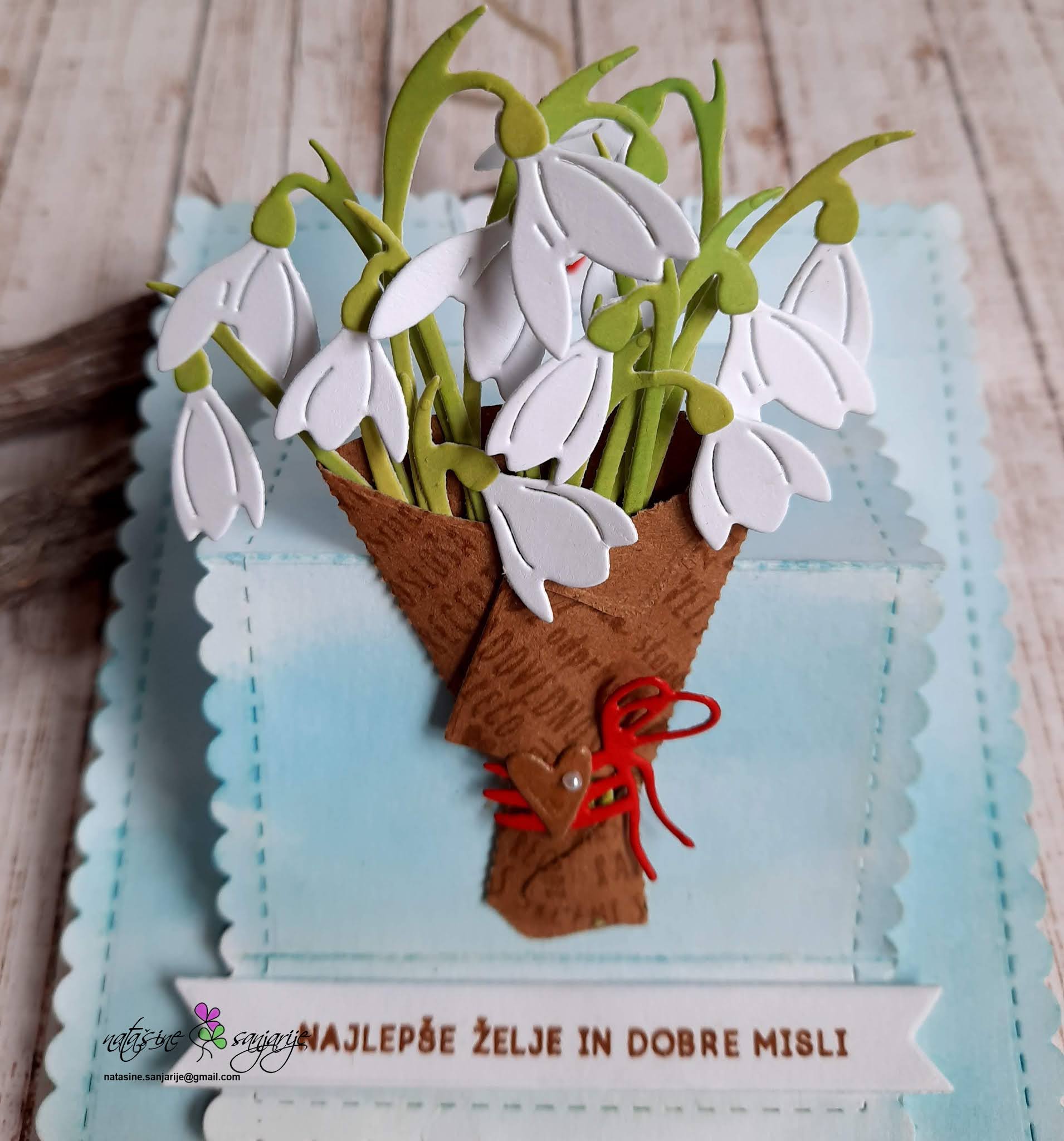 Po navdihu naše zlate Tine je nastala voščilnica z zvončki. Izdelala jo je Julija ob moji pomoči za staro babi 💓.